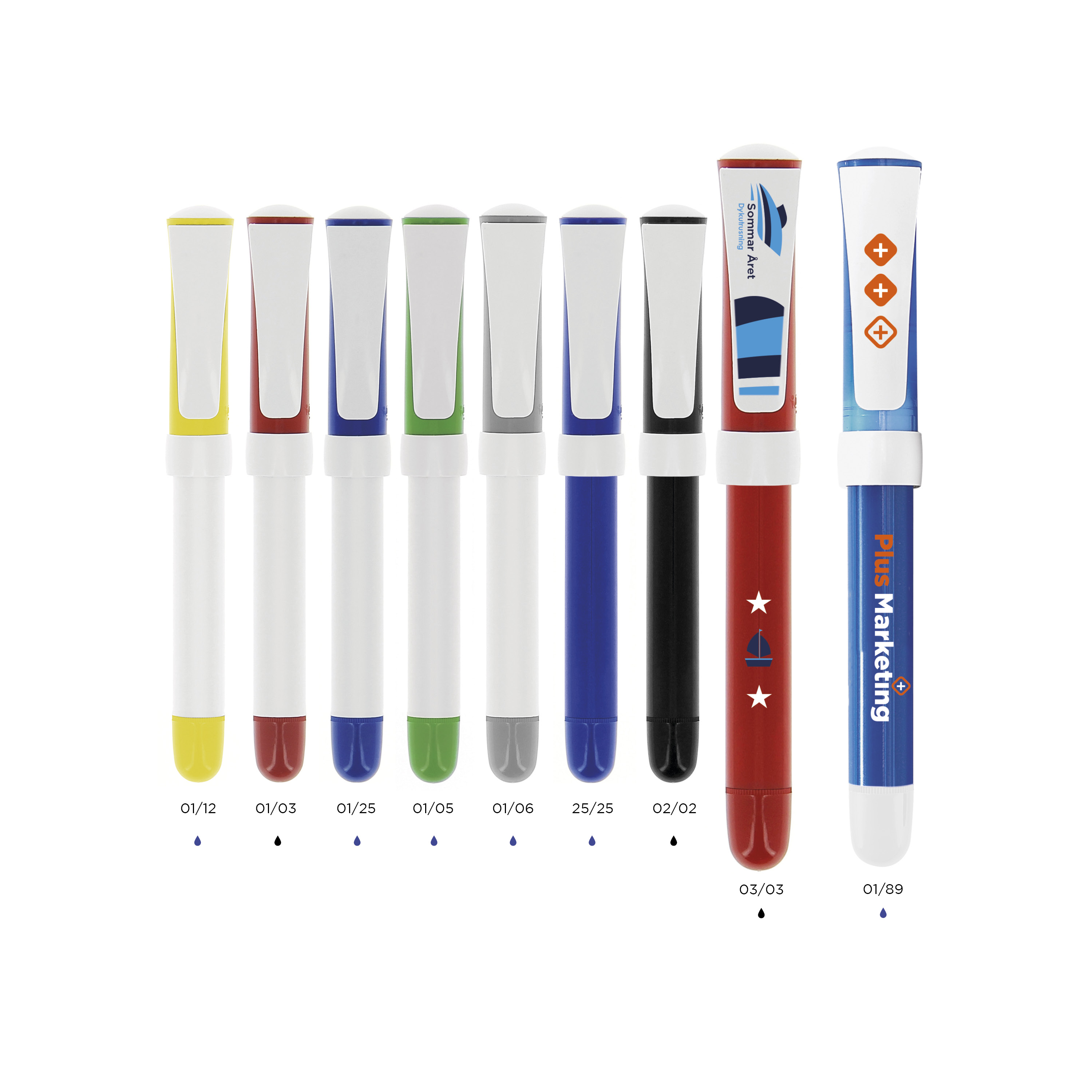 White / Red / Black Ink-01/03/R2 | White / Grey / Blue Ink-01/06/R1 | White / Dark Blue / Blue Ink-01/25/R1 | White / Green / Blue Ink-01/05/R1 | White / Yellow / Blue Ink-01/12/R1 | White / Light Blue / Blue Ink-01/24/R1 | Clear dark blue / White / Blue Ink-89/01/R1-Transparent | Black / Black / Black Ink-02/02/ R2 | Red / Red / Black Ink-03/03/ R2 | Dark blue / Dark blue / Blue Ink-25/25/ R1