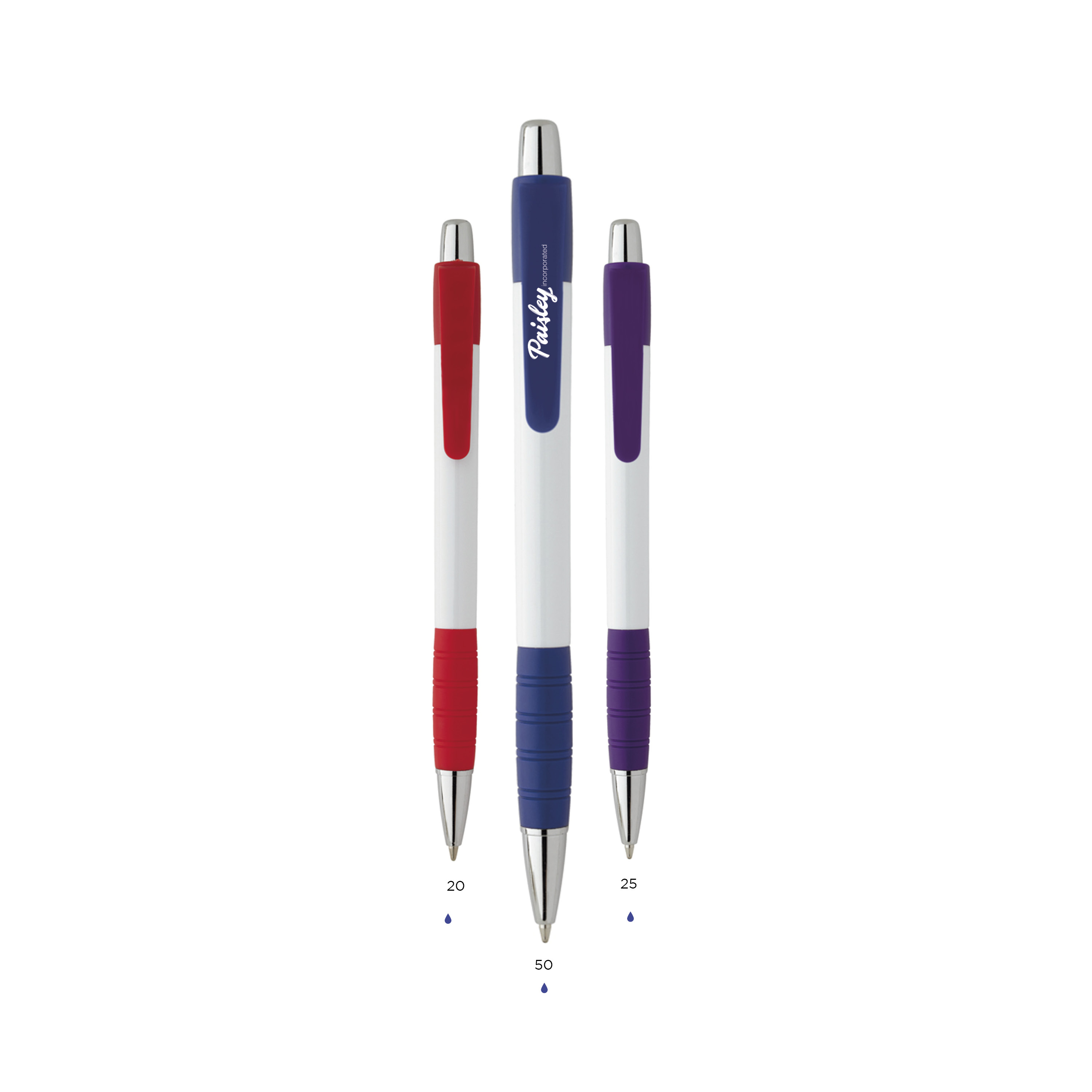 White Striped Grip Kugelschreiber Siebdruck